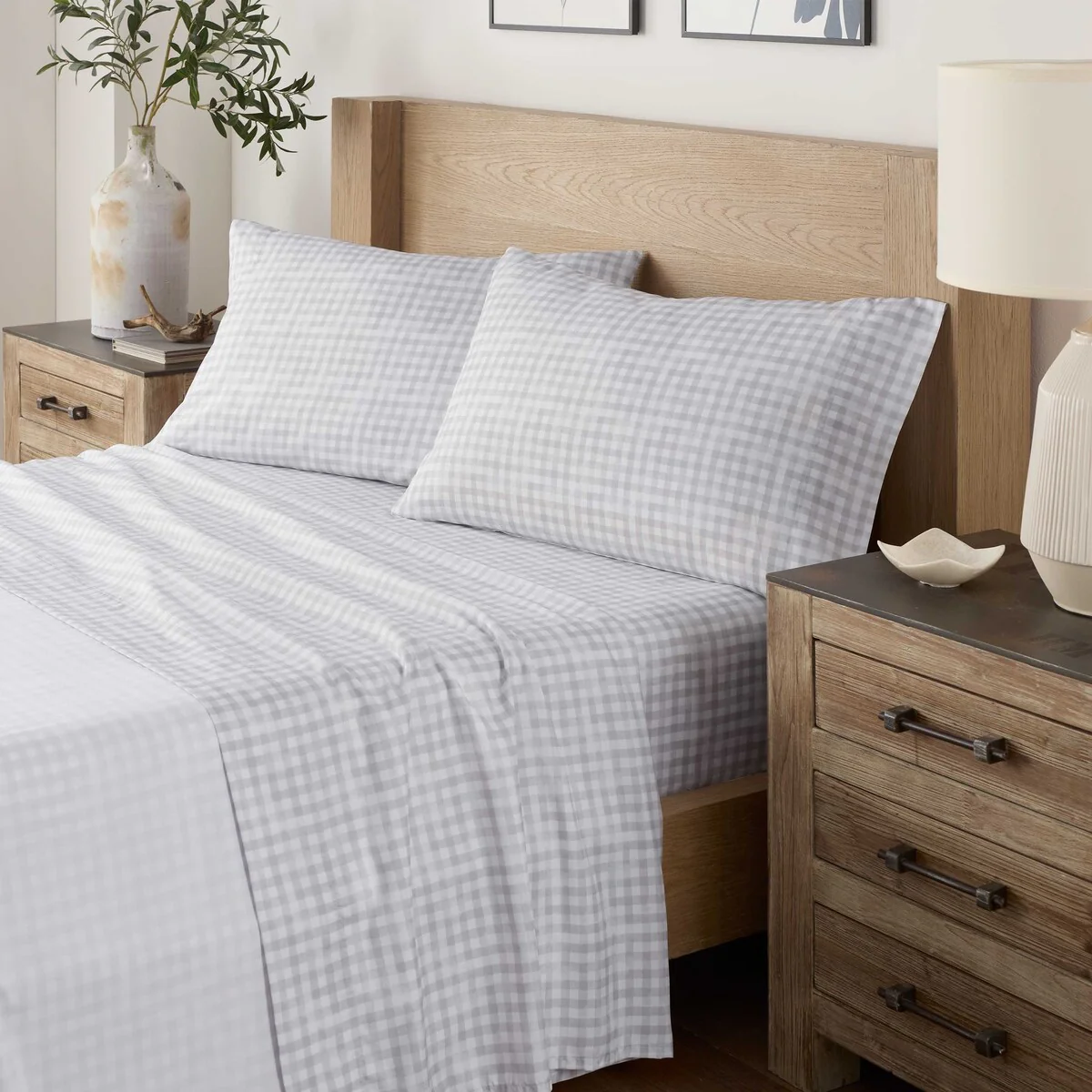 Highland 300 Thread Count Cotton Extra Deep Pocket Plaid 4-piece Bed Sheet Set