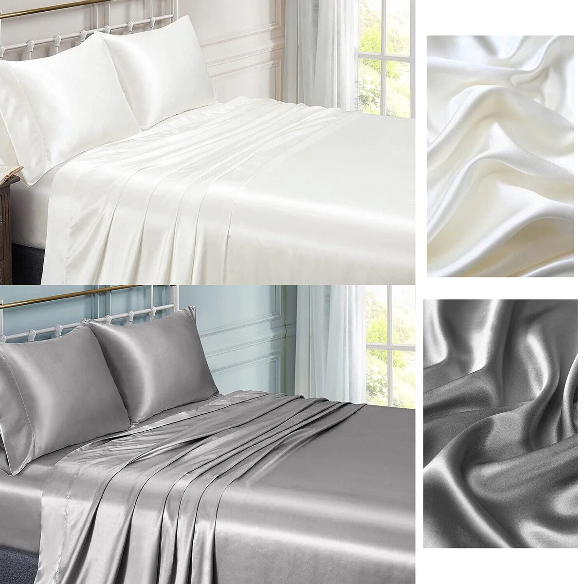 4 PCS Super Soft & Silky Satin Bed Sheet Set Queen Size Sheet Pillow Cases