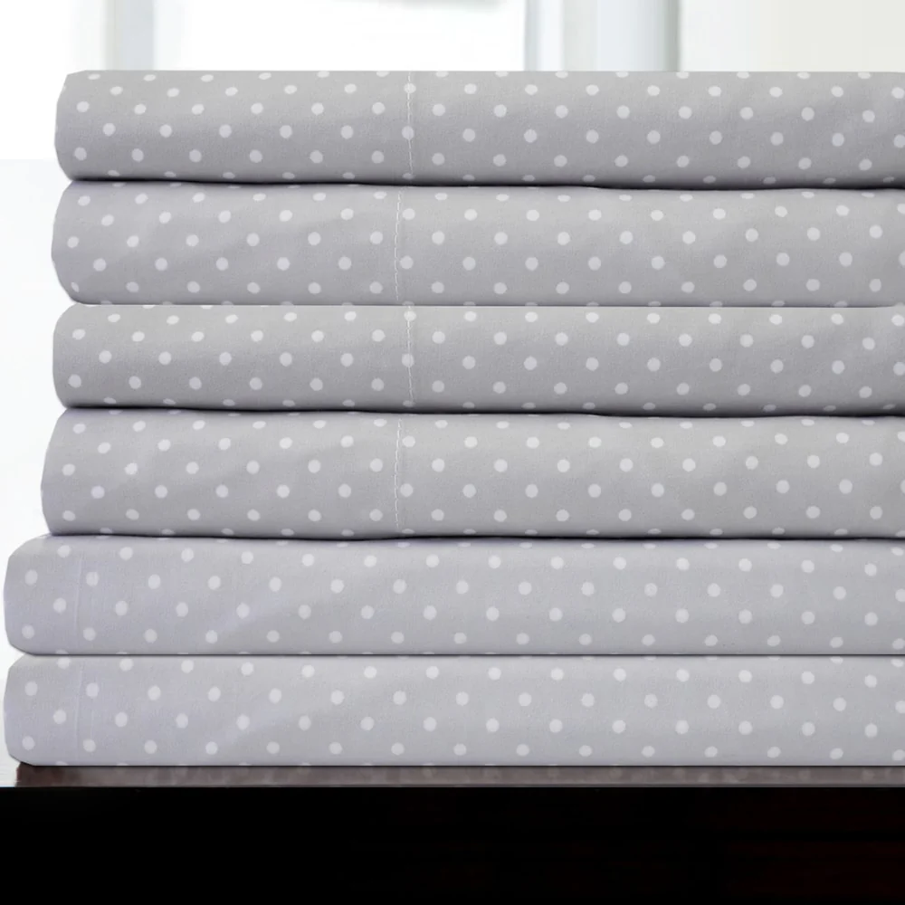 6 Piece Dot Print Bedroom Bed Sheet Set- Grey