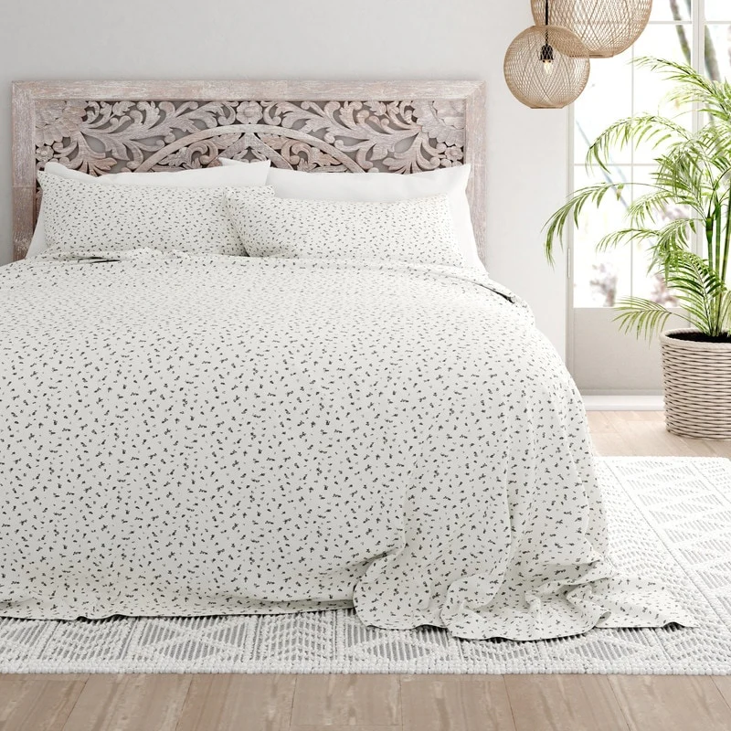 Becky Cameron Spotted Leaves Pattern 4 Piece Deep Pocket Bed Sheets Set