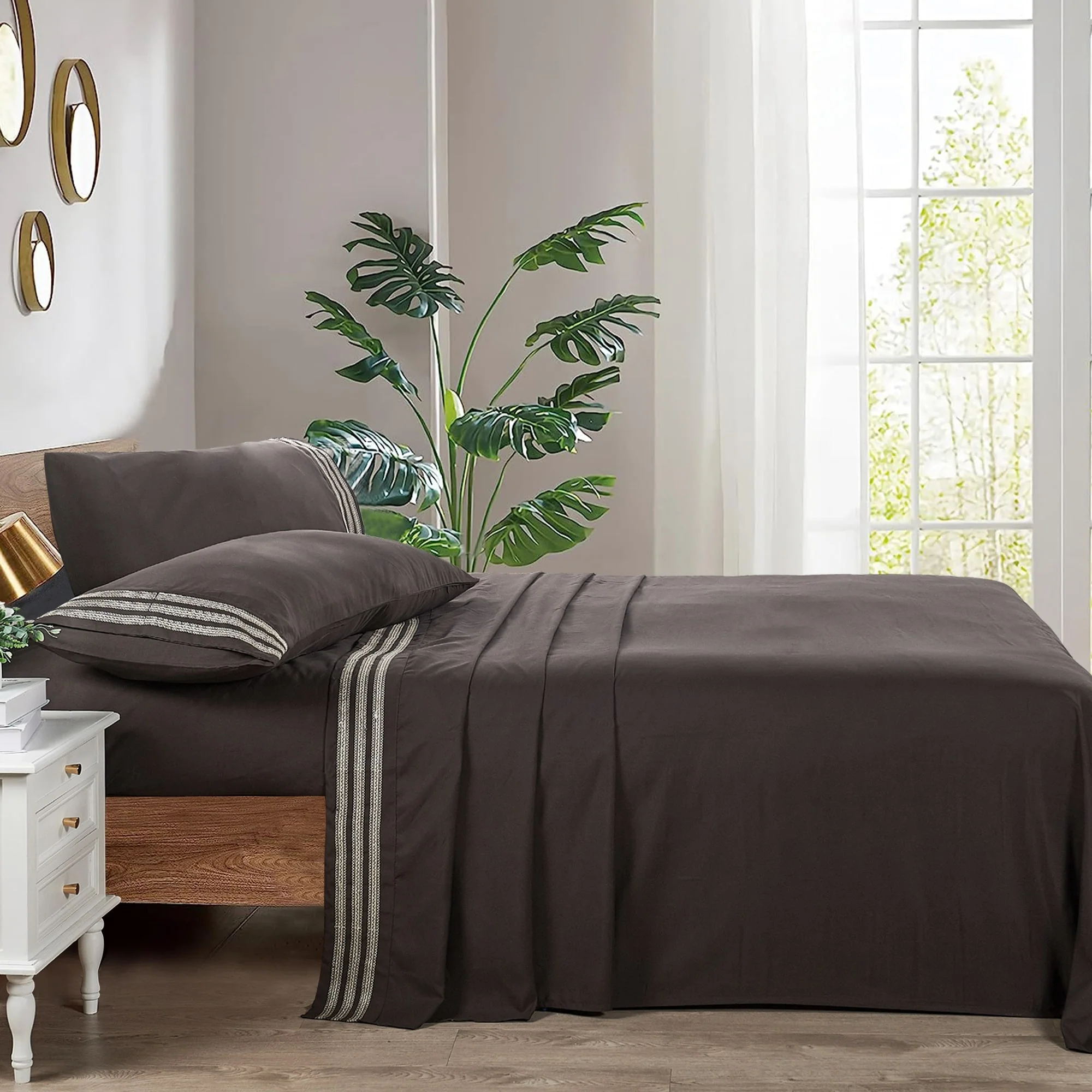 Just Linen 400 TC 100% Egyptian Cotton Sateen, Solid Queen Sheet Set with 18" Deep Pocketed Fitted Sheet