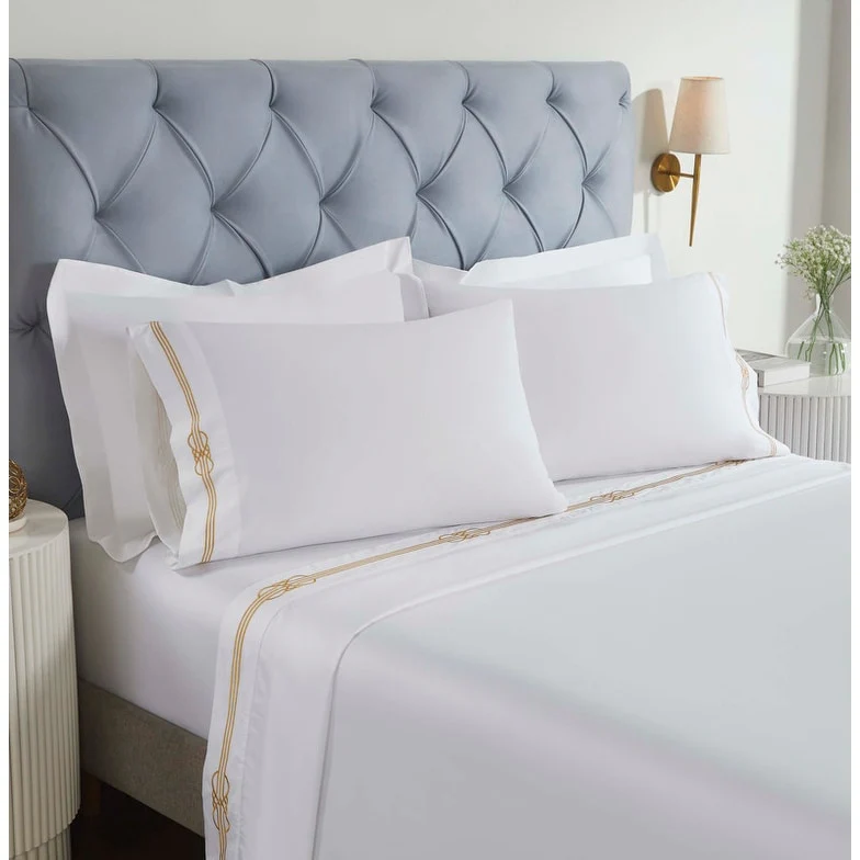 Blue Nile Mills Harmony Cotton Gold Embroidered Bed Sheet Set