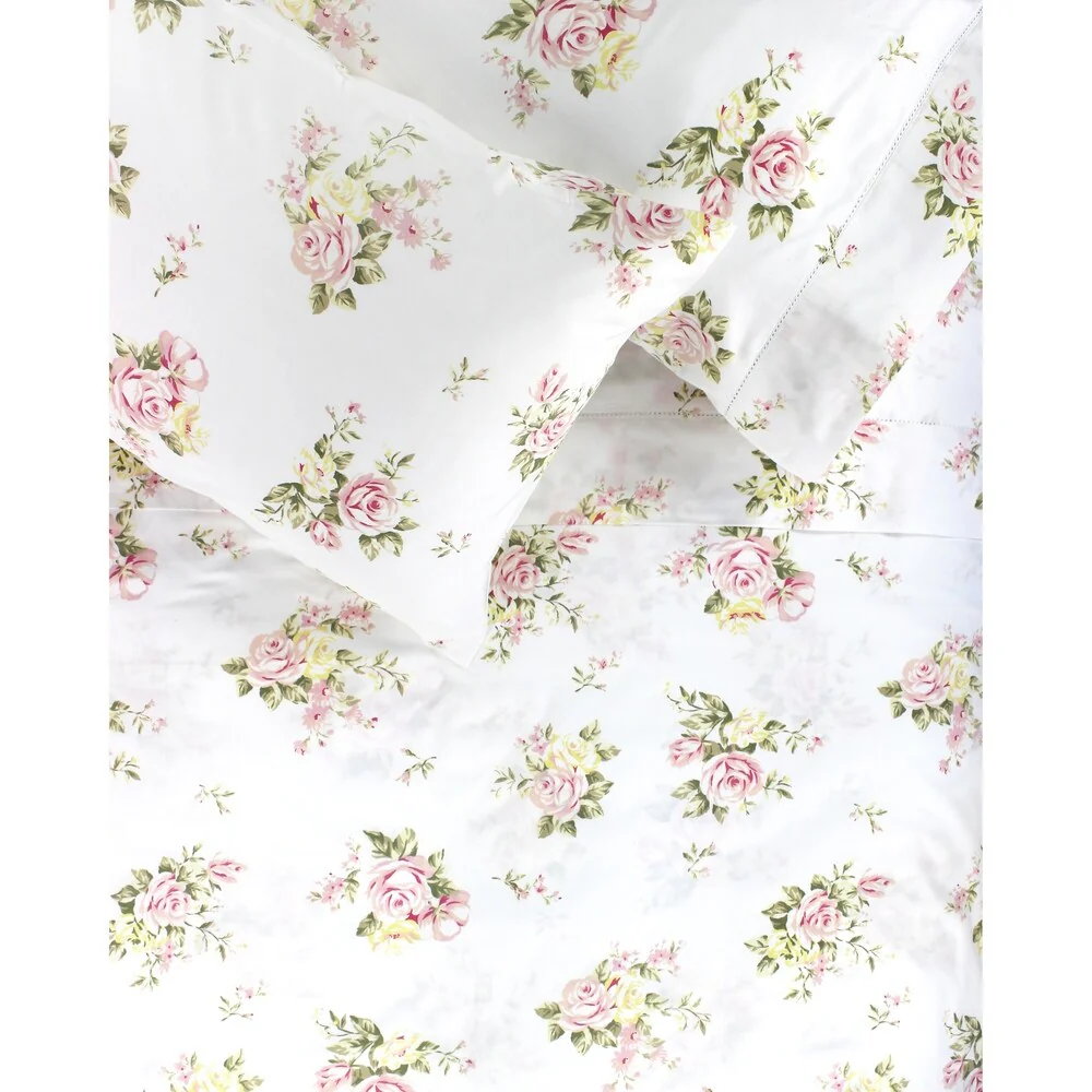Printed Design Cotton Collection 400TC Rose Hemsitich Bed Sheet Set