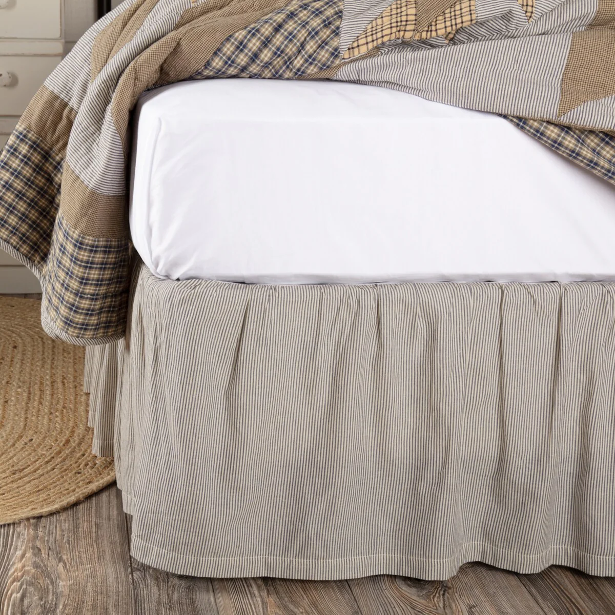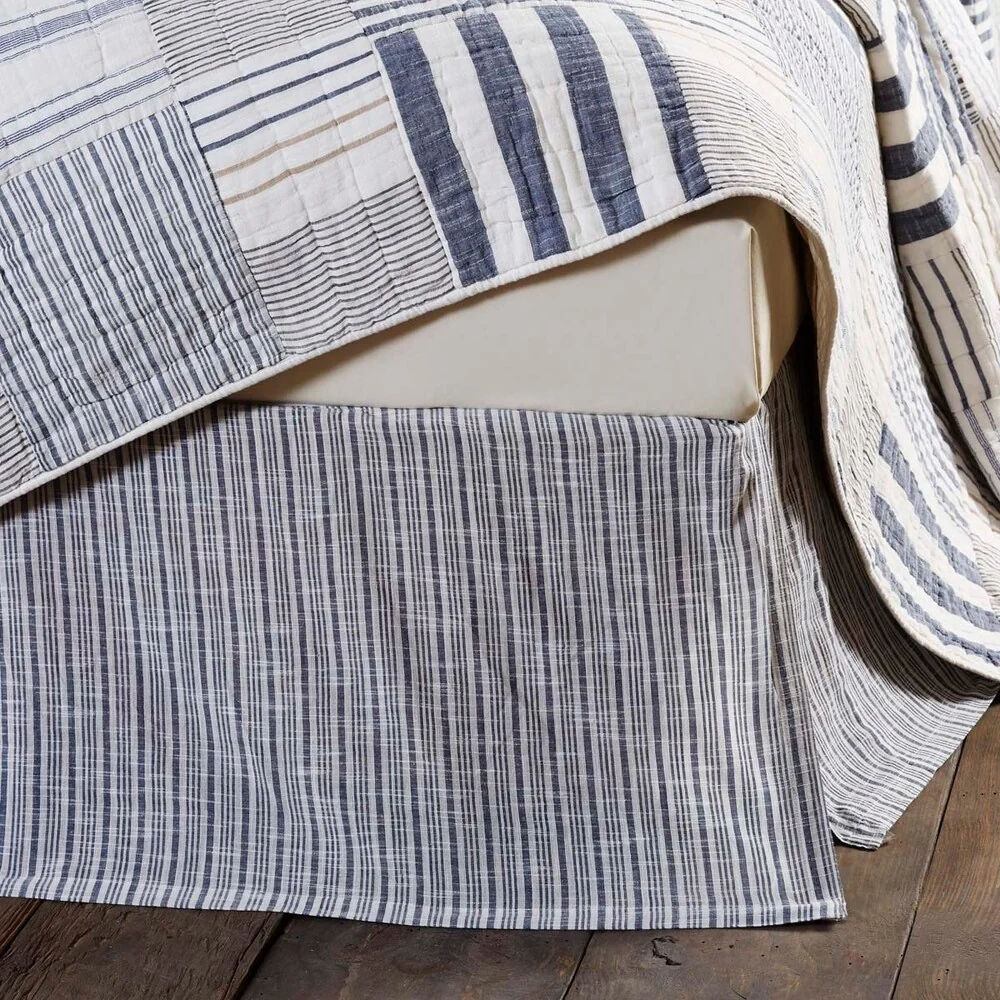 Dakota Star Farmhouse Blue Ticking Stripe Bed Skirt