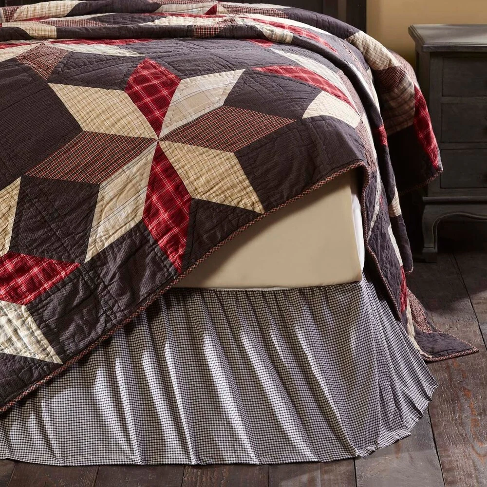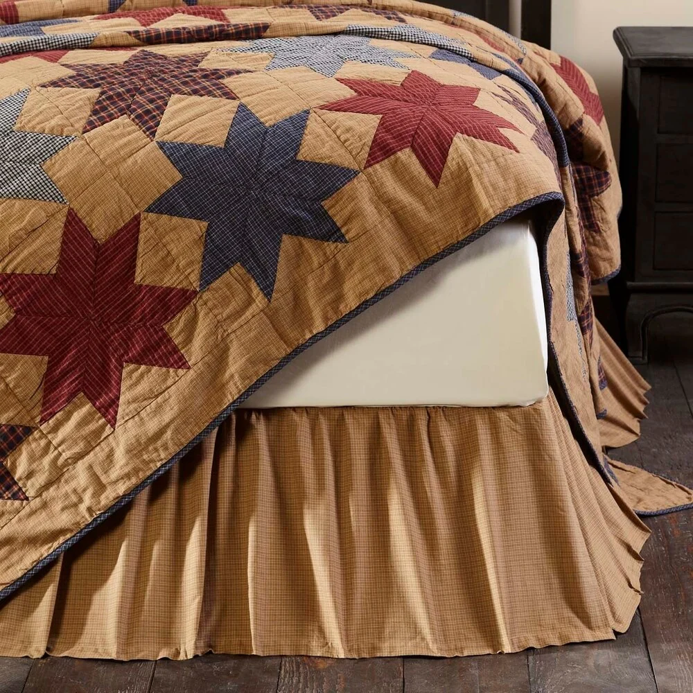 Tan Primitive Bedding VHC Kindred Star Bed Skirt Cotton Plaid Gathered