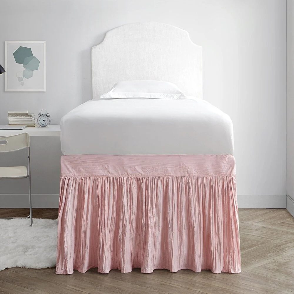 Crinkle Bed Skirt Twin XL (3 Panel Set) - Rose Quartz