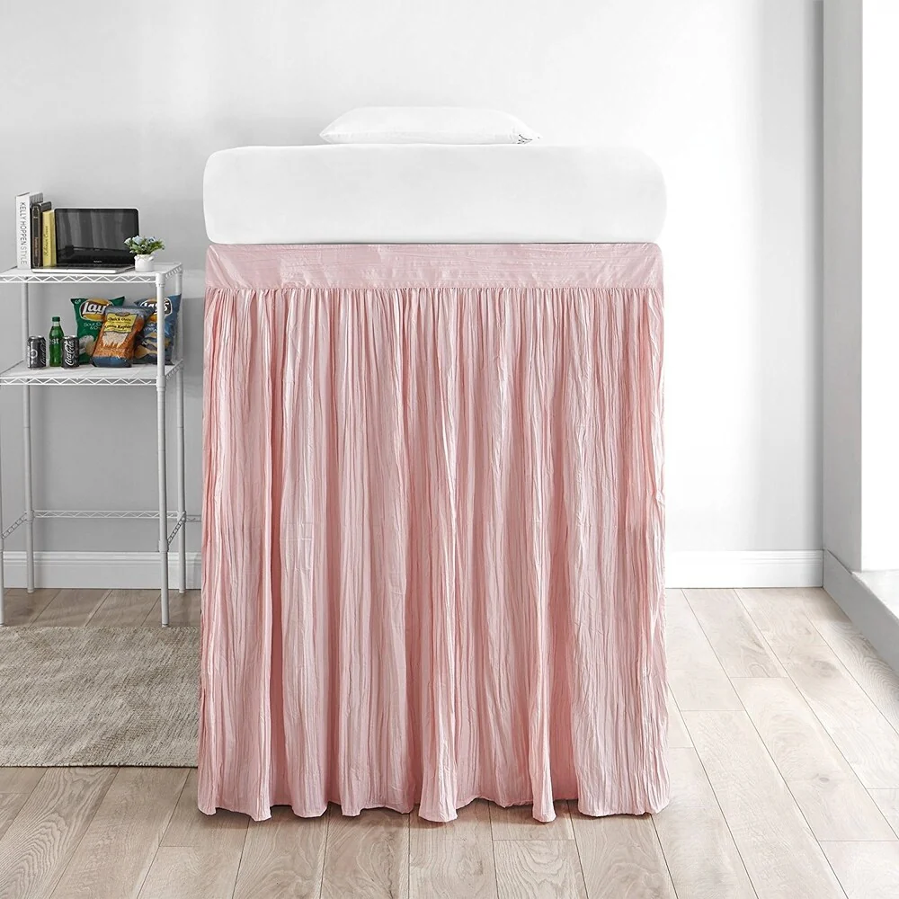 Crinkle Extended Bed Skirt Twin XL (3 Panel Set) - Rose Quartz
