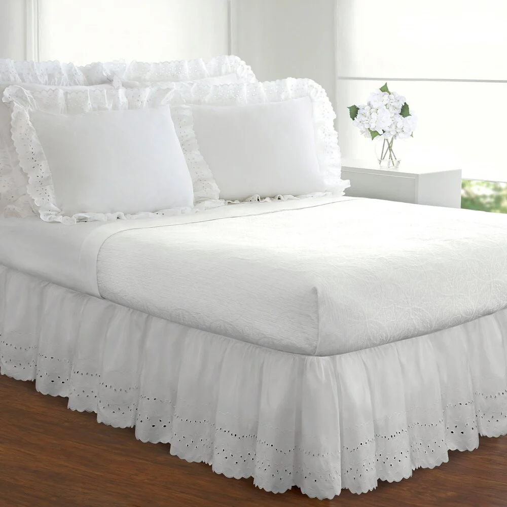 Linen Bed Skirt, 3 Side Linen Border, 16" Ruffled Drop, Twin, Queen, King, CK Size, White, Natural Color