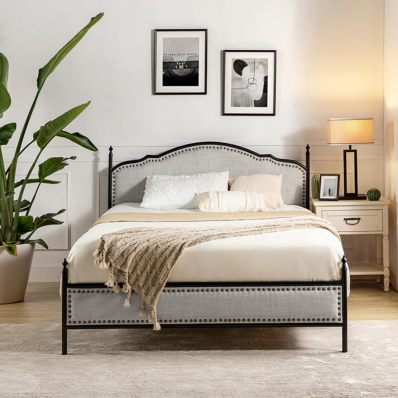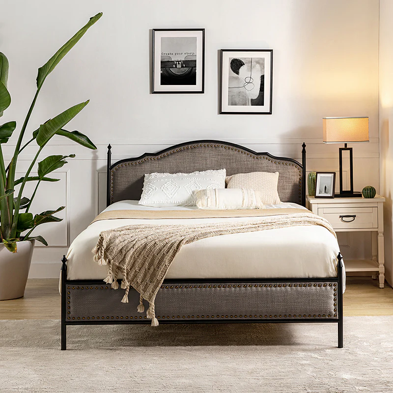 Amadeus Upholstered Platform Bed With Washable Slipcover for Bedroom