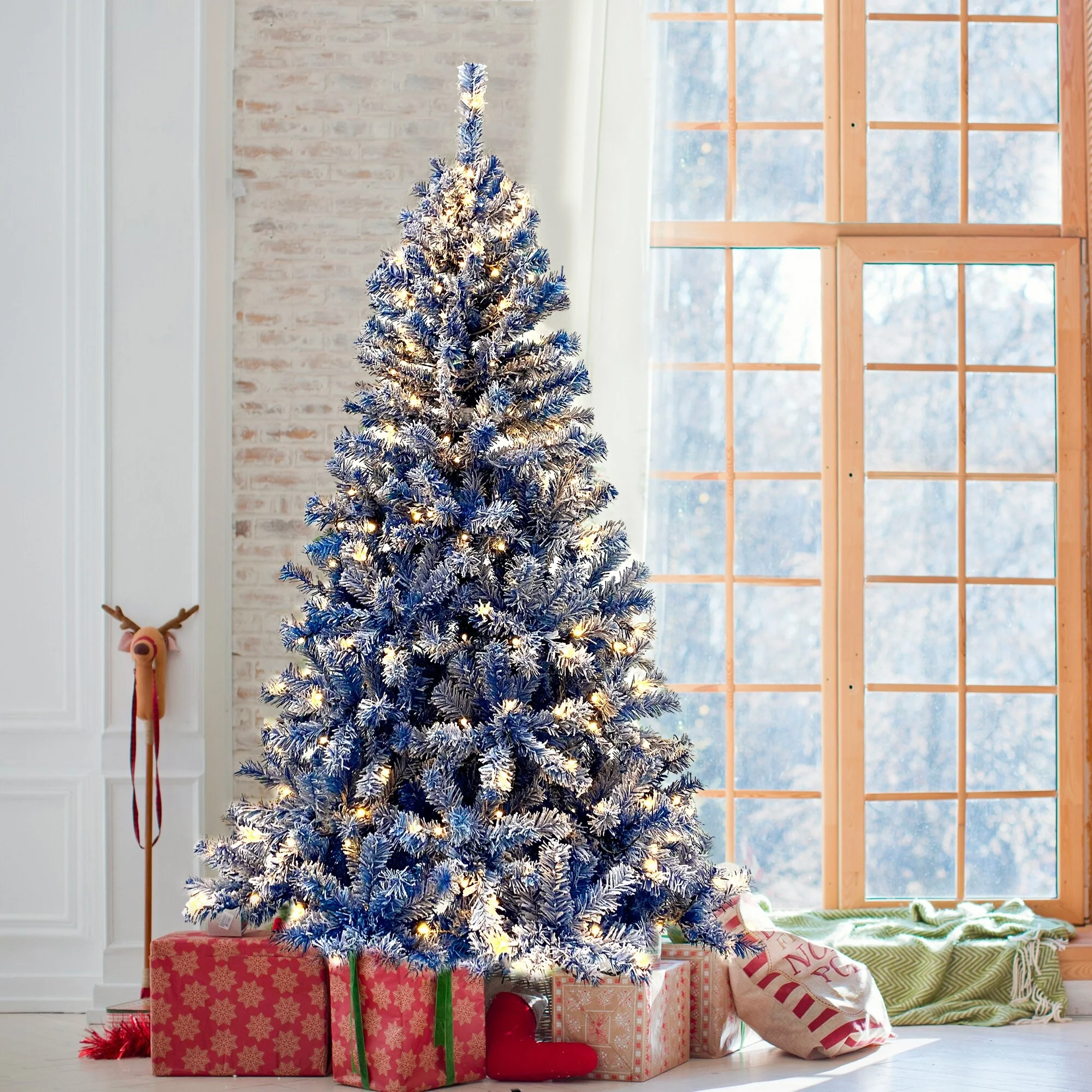 Lifelike Snow-Flocked PE & PVC Christmas Tree with Hinged Structure and Secure Metal Base