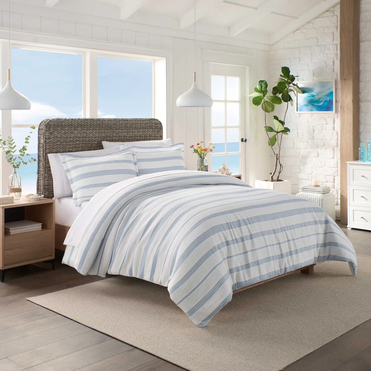 Tommy Bahama Seersucker Solid Reversible 8 Piece Comforter Bonus Set