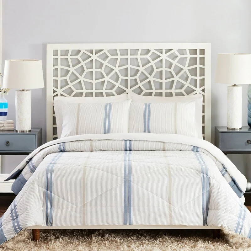 Madison Park Essentials Braydon Blue Reversible Stripe Down Alternative Comforter Set