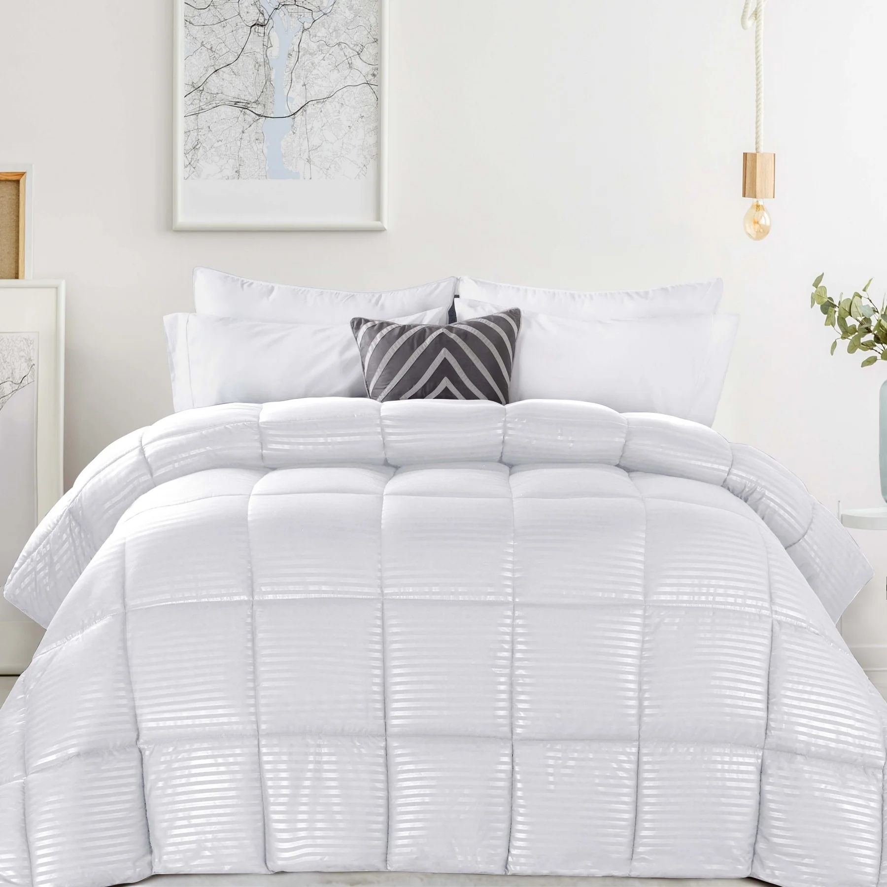 Superior 1 cm Striped Brushed Microfiber Reversible Down Alternative Comforter