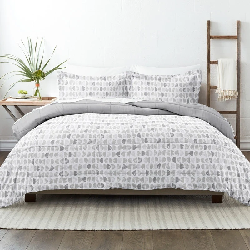 HCI Hand Crafted Brushed Velvet Down Alternative Reversible Excalibur Grey and Blacberry Twin Comforter Set