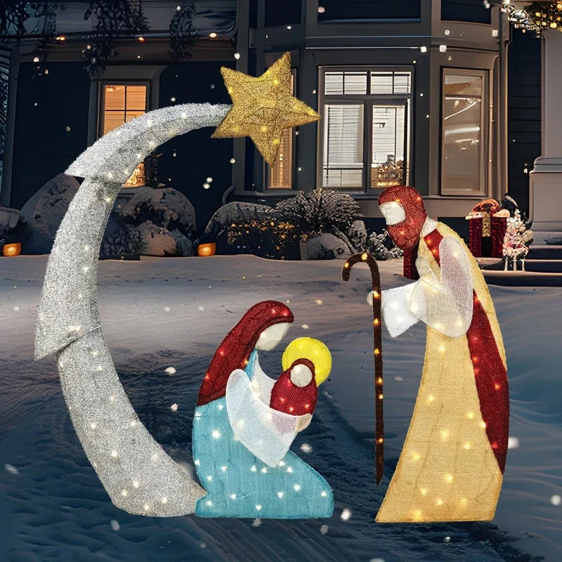 Joyfy 5FT 3D Christmas Nativity Scene Tinsel Yard Light, 140 Pre-Lit LED Warm White Lights - Multi-Color