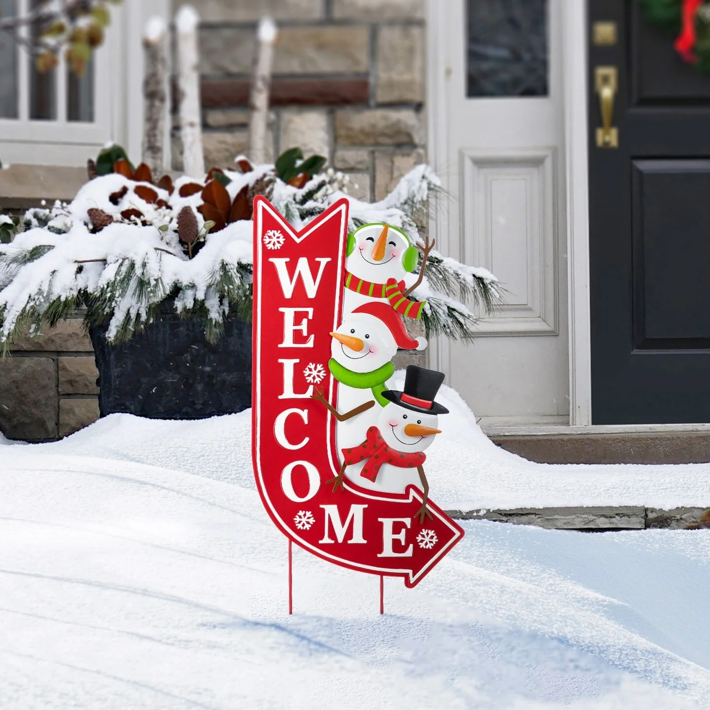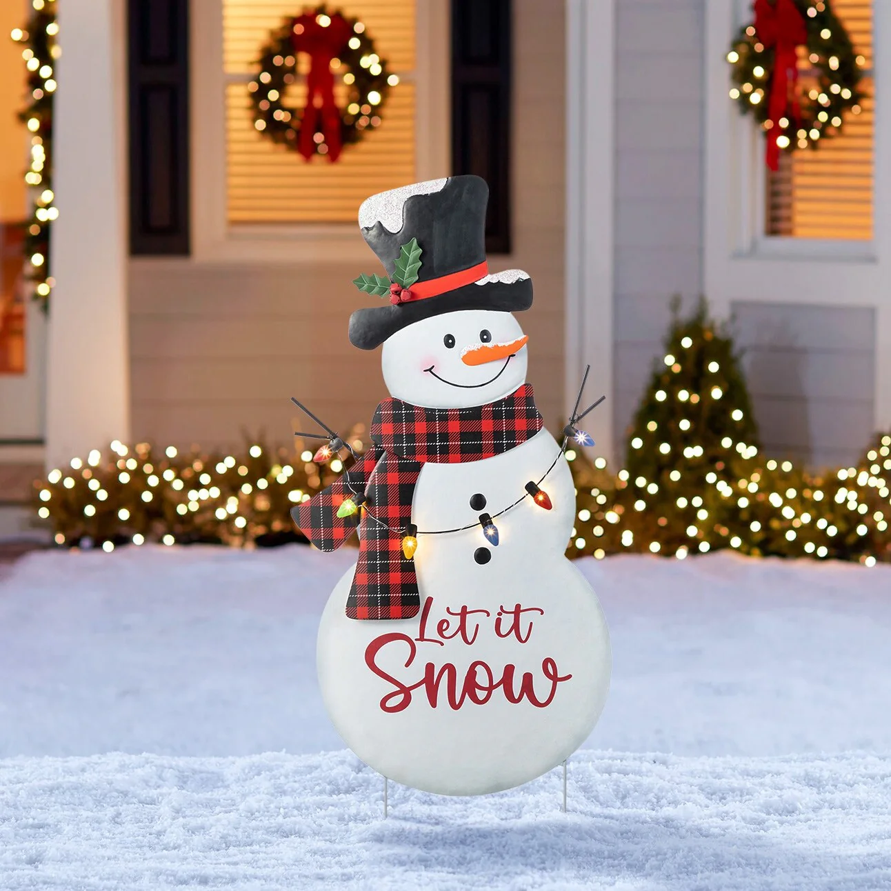 Glitzhome 36"H Lighted Metal Christmas Let it Snow Snowman with Colorful Bulbs Yard Stake - Multi