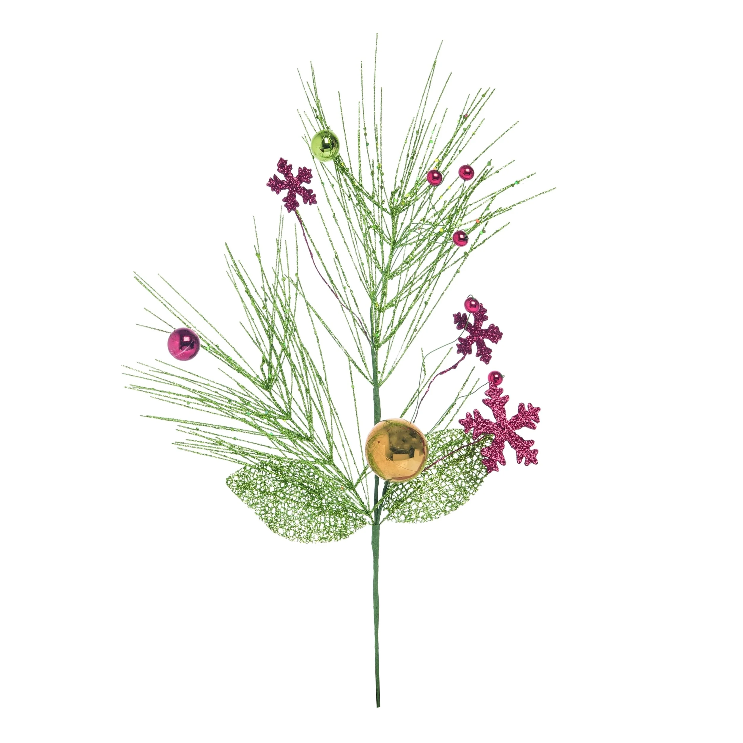 Transpac Artificial 19.5 in. Green Christmas Floral Glitzy Spray