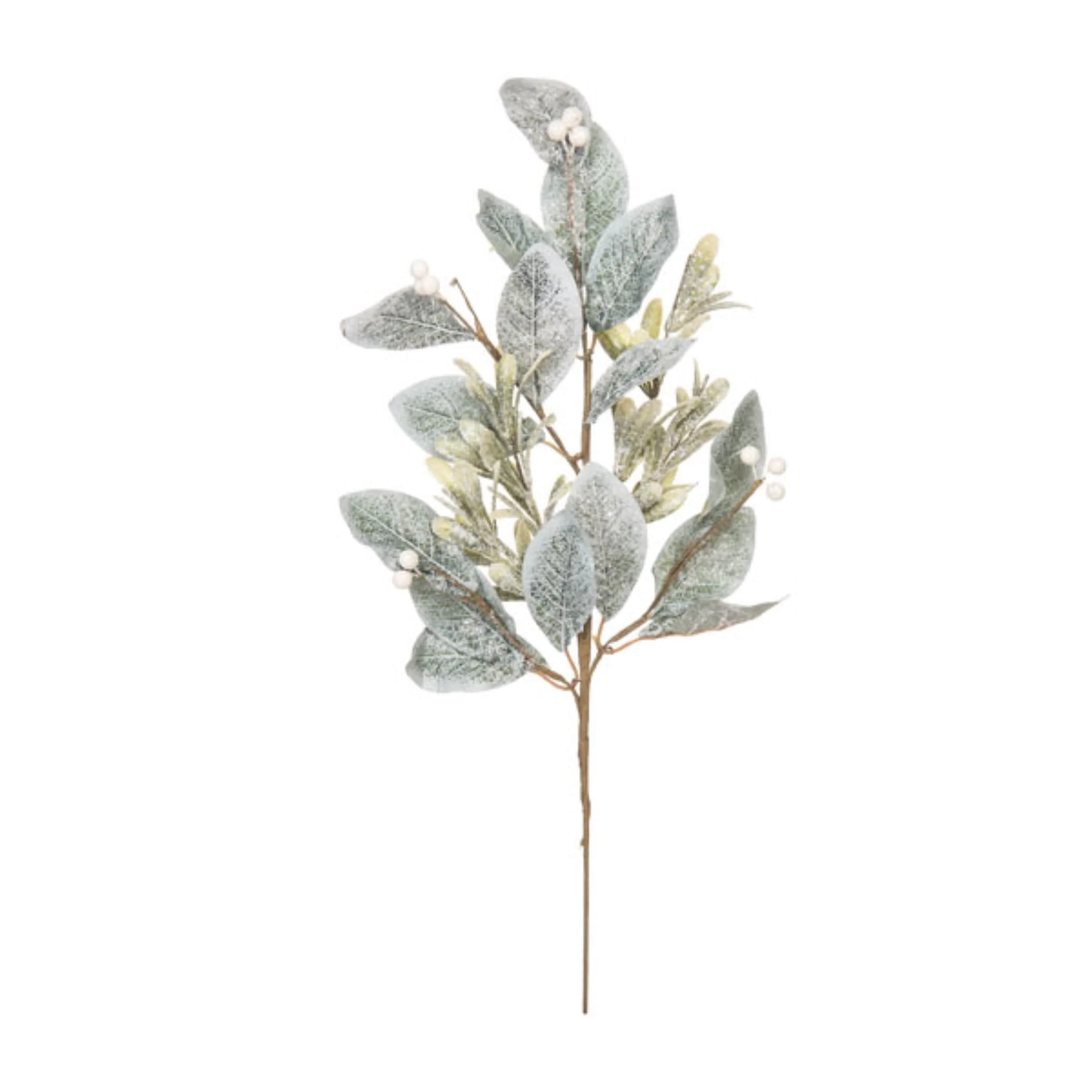 Transpac Fabric 24 in. Green Christmas Frosted Magnolia Spray