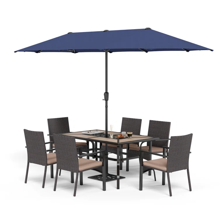 8pcs Outdoor Patio Dining Sets With Blue Umbrella