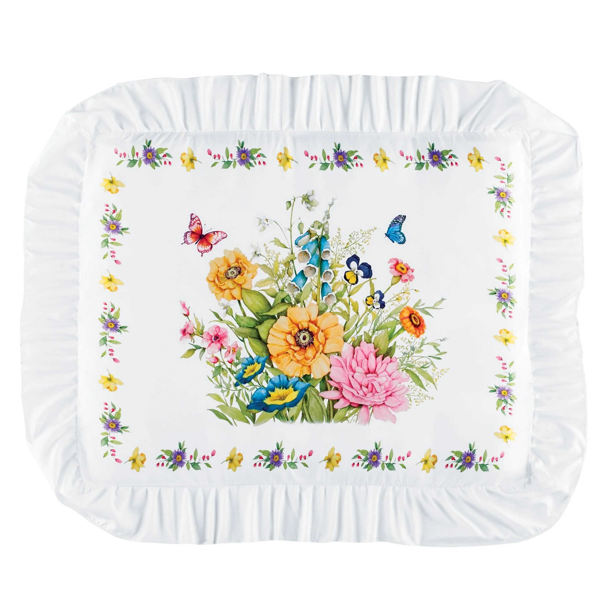 Colorful Poppy and Butterflies Ruffled Edge Pillow Sham