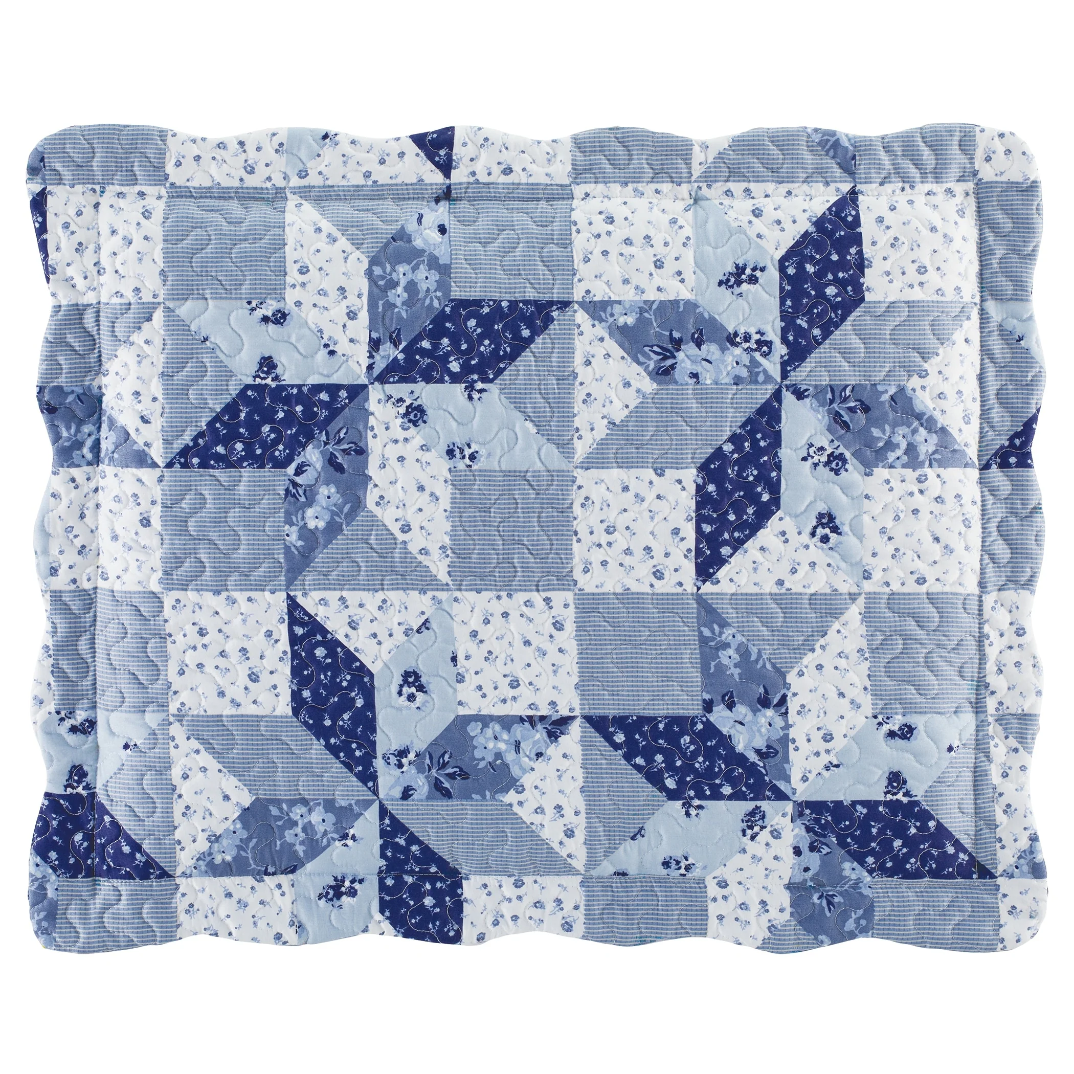 Lovely Evening Star Floral Patchwork Scalloped Edge Pillow Sham