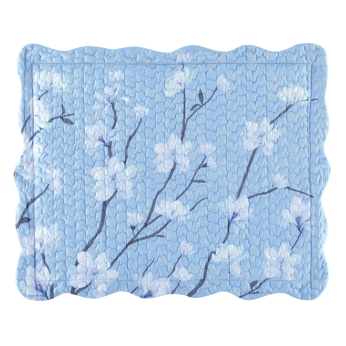 Lovely White Floral Blossom Scalloped Edge Pillow Sham