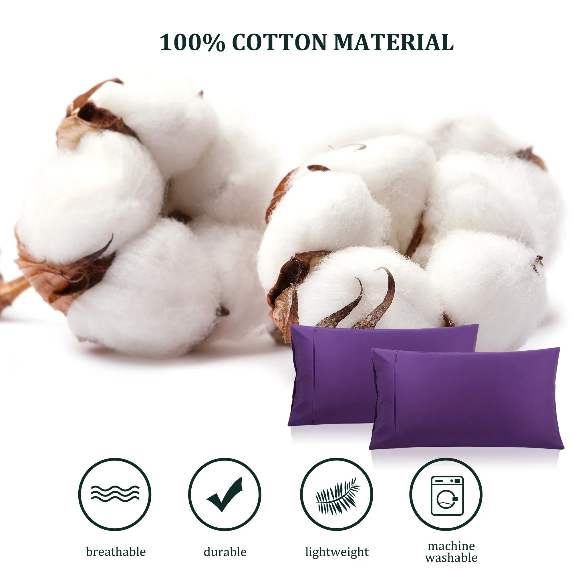 Pillowcase Set of 2 Soft Cotton with Zipper