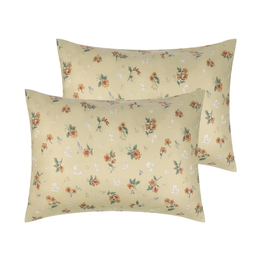Cotton Pillowcases Vintage Floral Envelope Closure Pillow Shams 2Pcs - Yellow