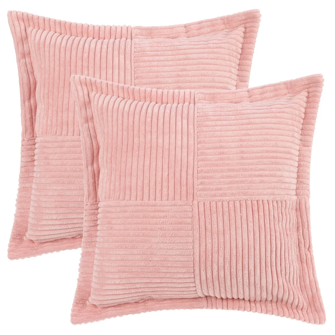 2x Solid Corduroy Striped Throw Pillow Covers, Decorative Cushion Case