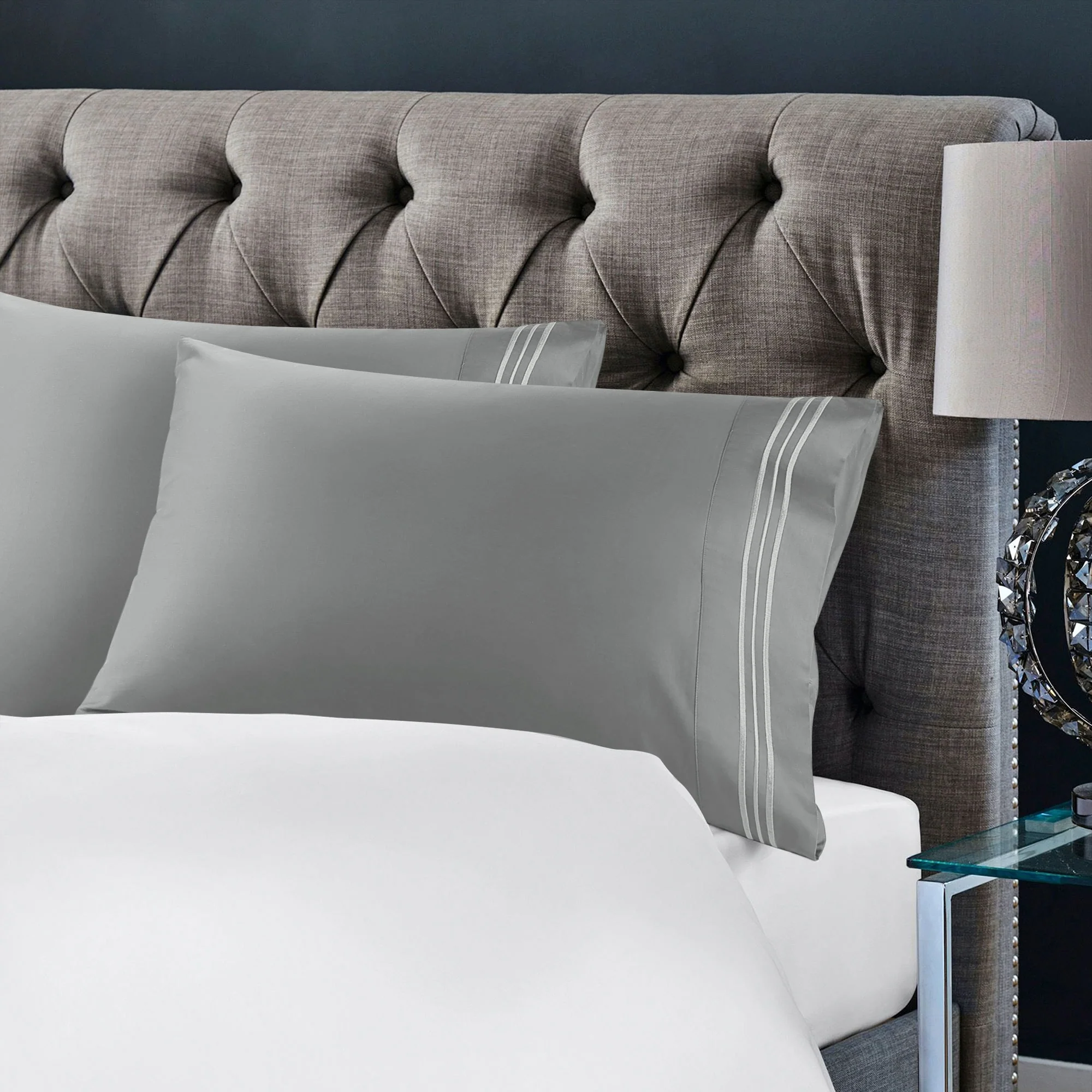 2Pcs Long-Staple Cotton Pillowcases Embroidered Pillow Covers