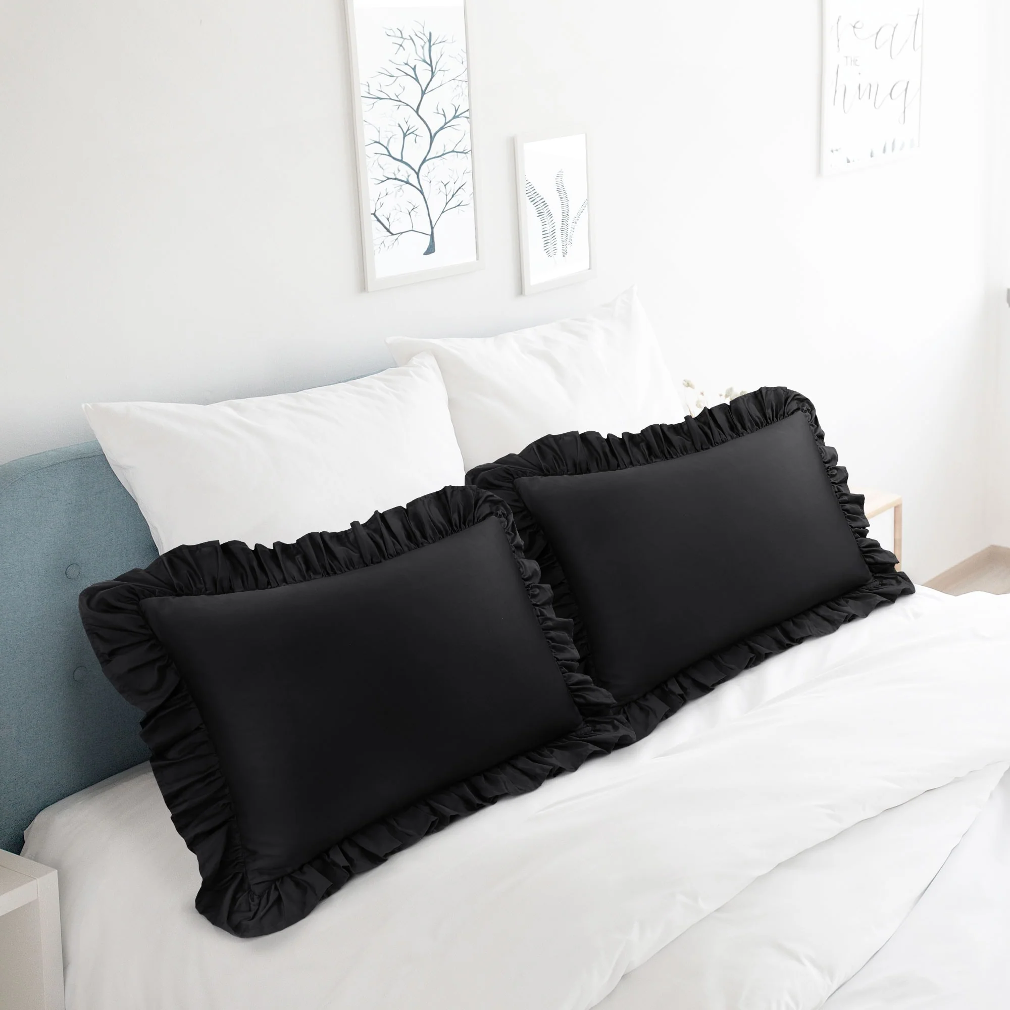 2 Pcs Cotton Ruffled Pillowcases Soft with Envelope