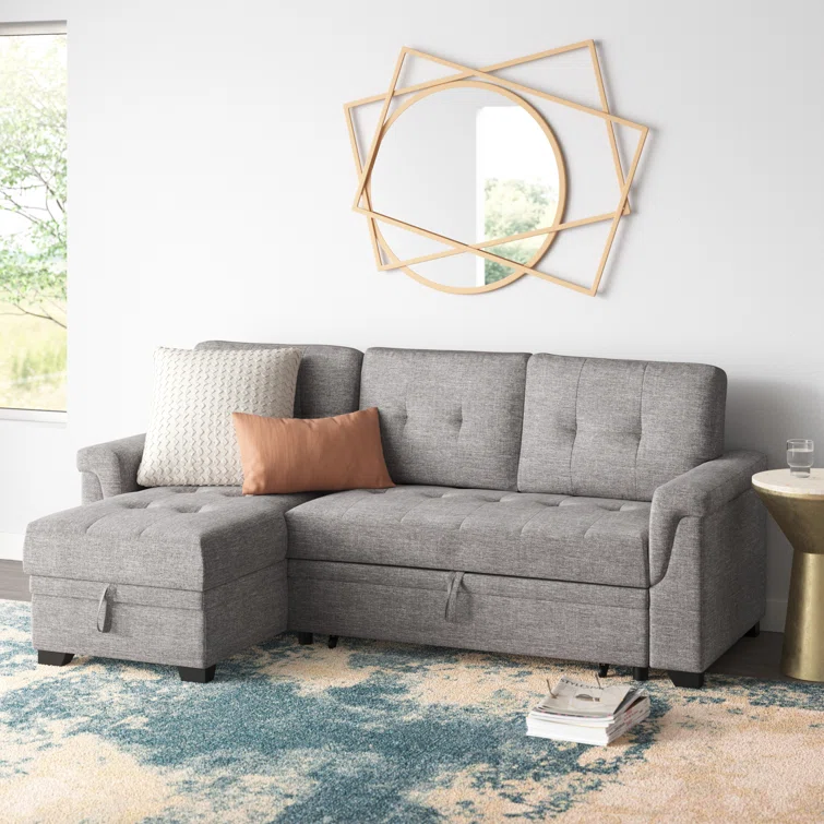 Zaida 104" Wide Velvet Reversible Modular Sofa & Chaise with Ottoman