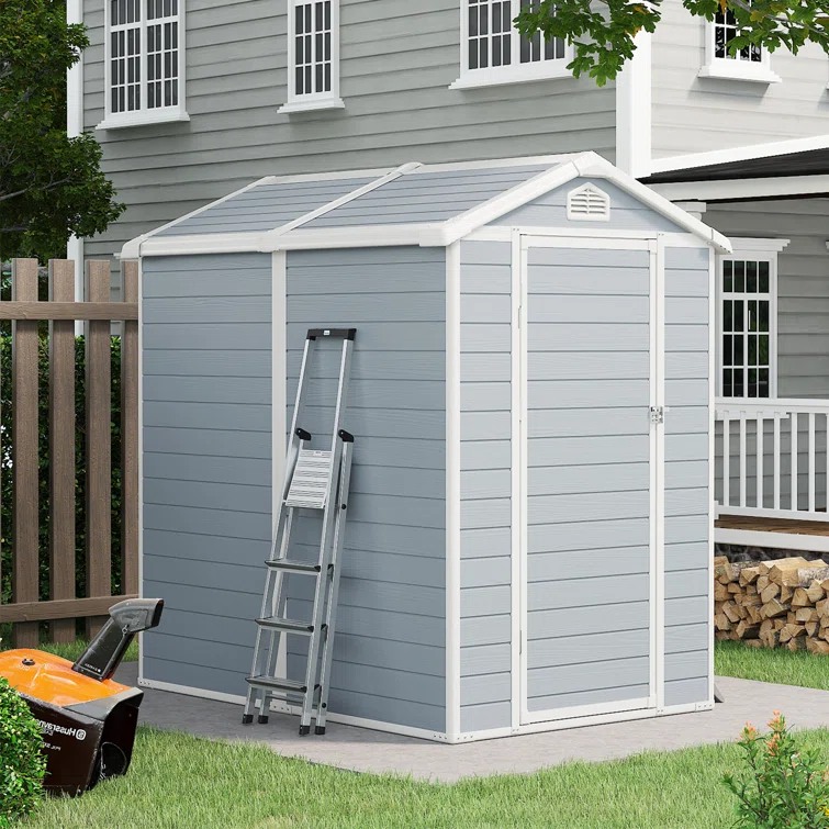 Keter Newton Plus Durable Resin Outdoor Storage Shed With Floor and Double Doors for Garden Patio Furniture and Tools, Graphite Grey (6 Available Sizes)