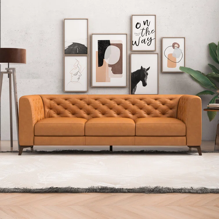 Staley 90" Genuine Leather Tuxedo Arm Sofa