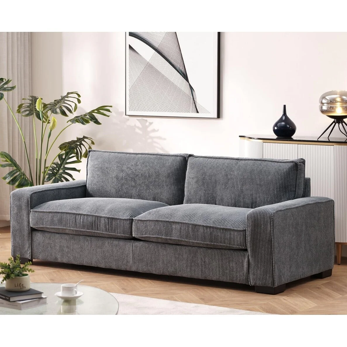 4-Seater Modern Linen Fabric Sofa with Armrest Pockets and 4 Pillows