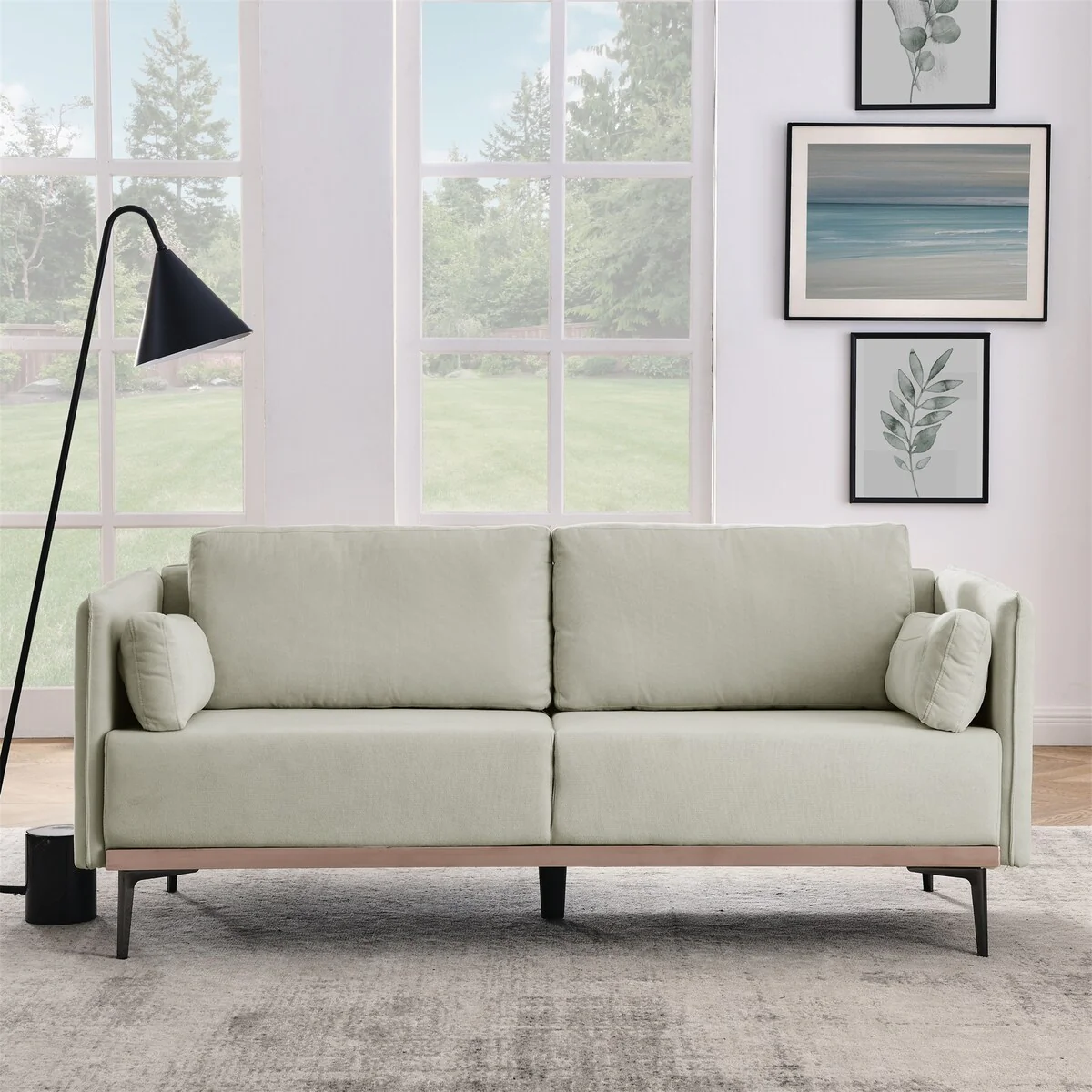 Velvet Upholstered 3-Seater Sofa Modern Living Room Couch Sofa with Deep Button Tufting Sofa and Metal Legs, Square Arms