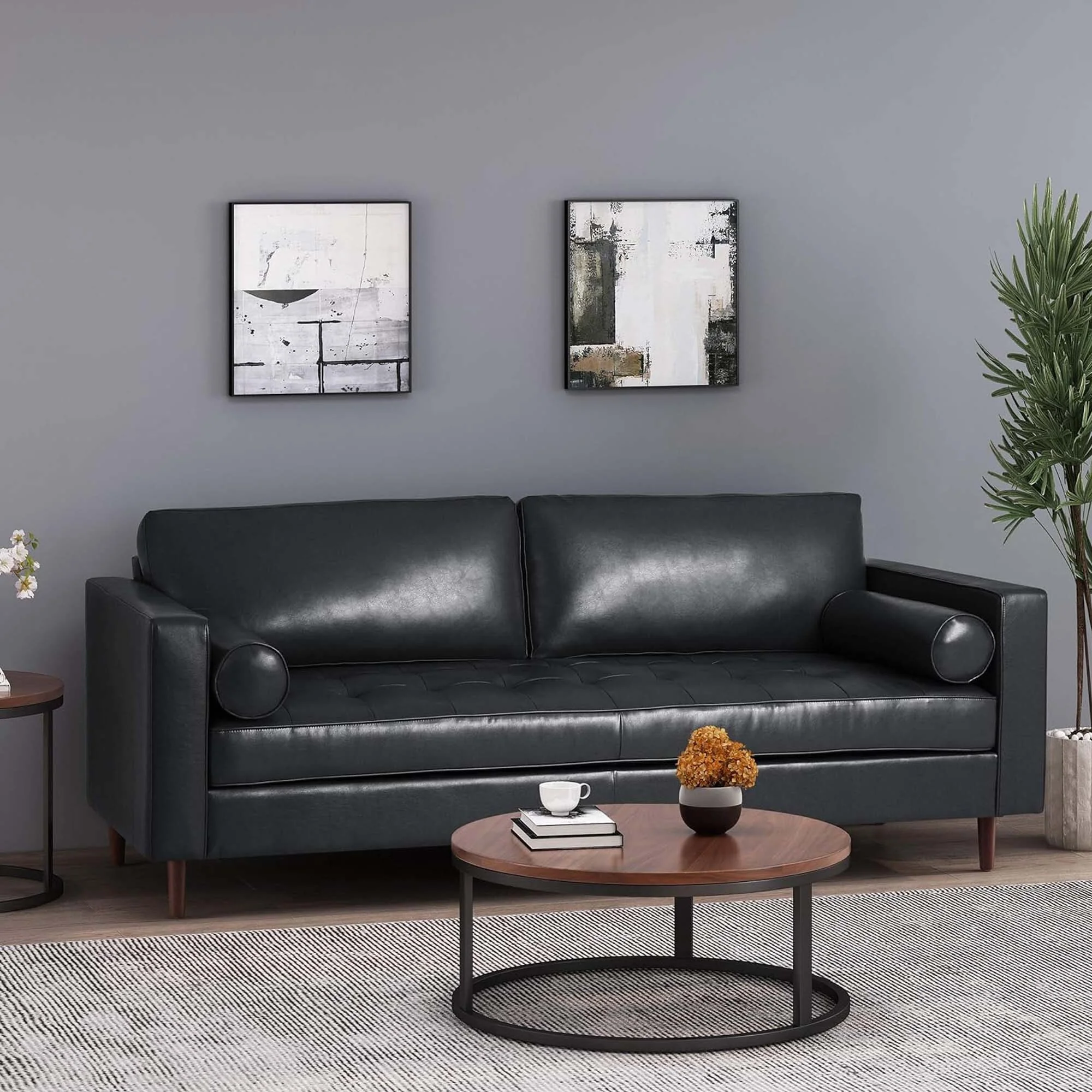 Classic 83" PU Leather Upholstered 3-Seater Sofa with Bottom Storage Box and Nailhead Decoration