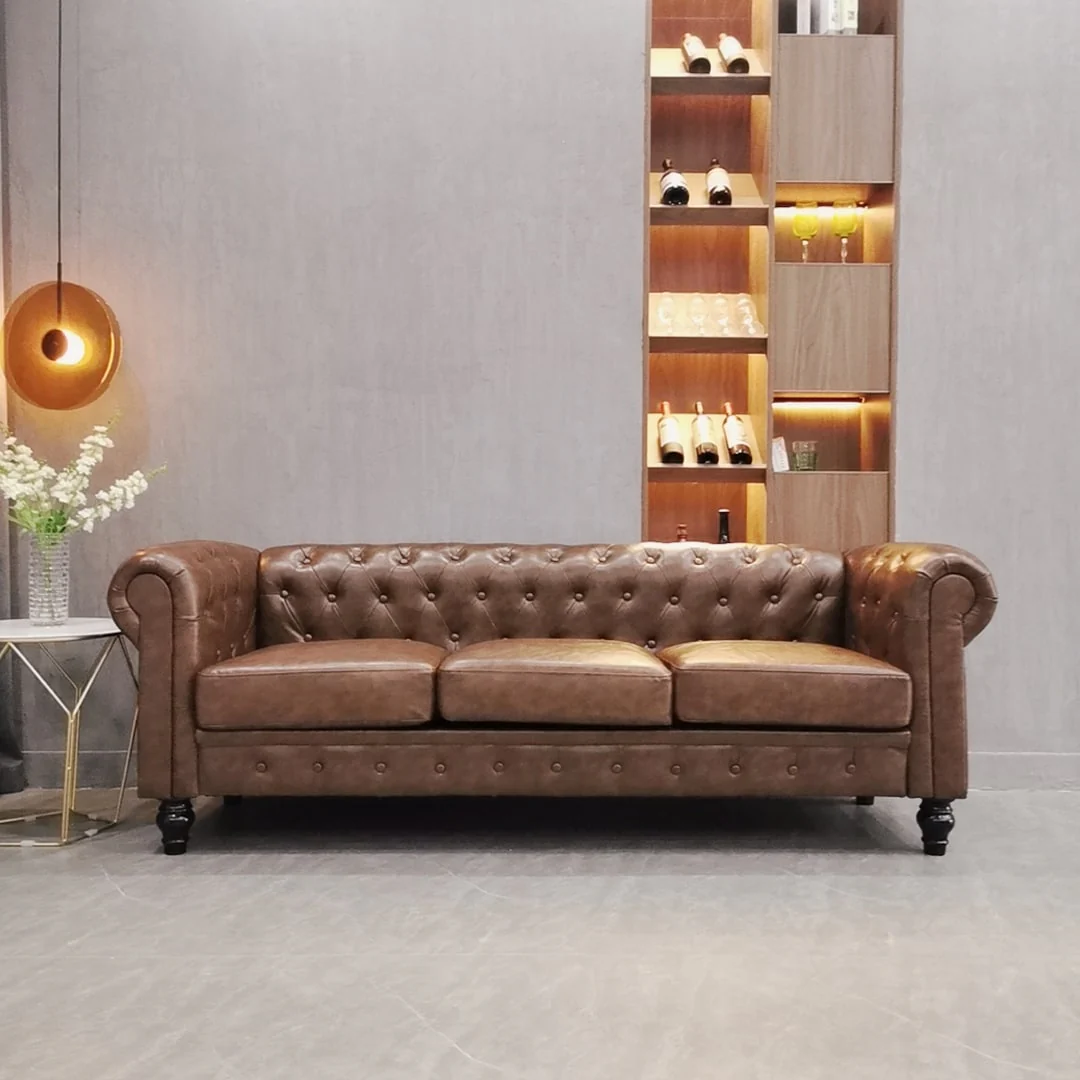 GIMMYFIVE 3-Seater Leather Sofa with Cushion, Couch for Living Room