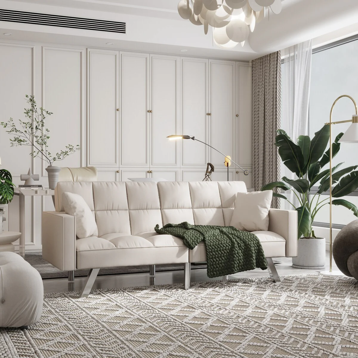 HOOOWOOO Modern Upholstery Chaise Sofa with Pillows for Living Room