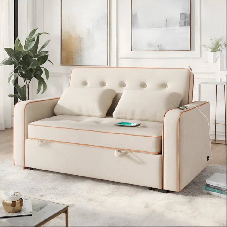 Ikal Velvet Upholstered Sleeper Sofa Bed with USB Port Pull Out Sofa Bed