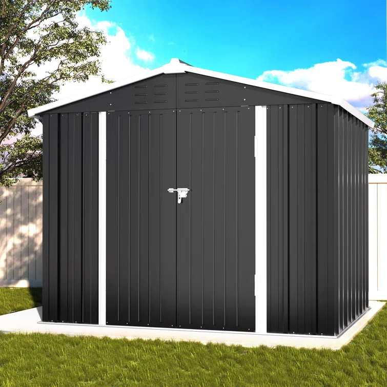8 ft. W x 6 ft. D Plastic Storage Shed with Floor, Resin Shed with Reinforced Steel Structure, Beige