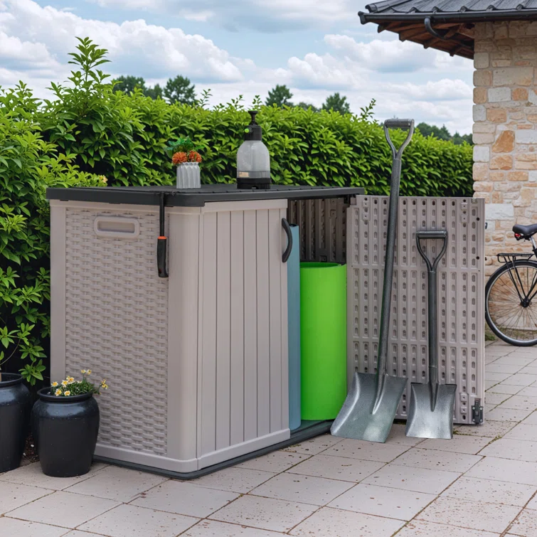 Outdoor Storage Shed, Horizontal Storage Box, Lockable Resin Waterproof Shed, Easy To Store Tools, Kids’bike, Litter Bin