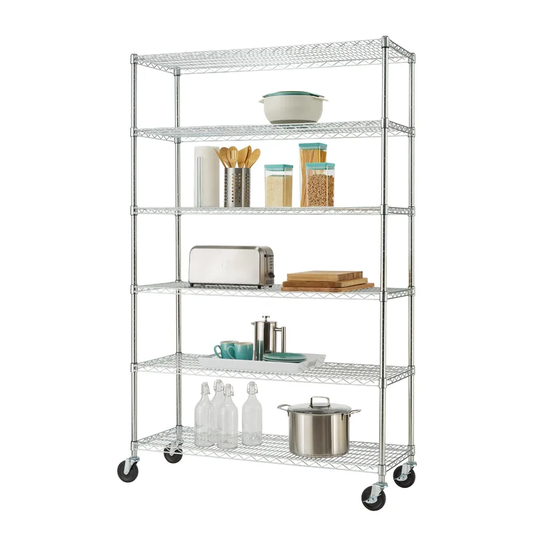 48" W x 18" D x 77" H 6 Tier Wire Shelving with Wheels