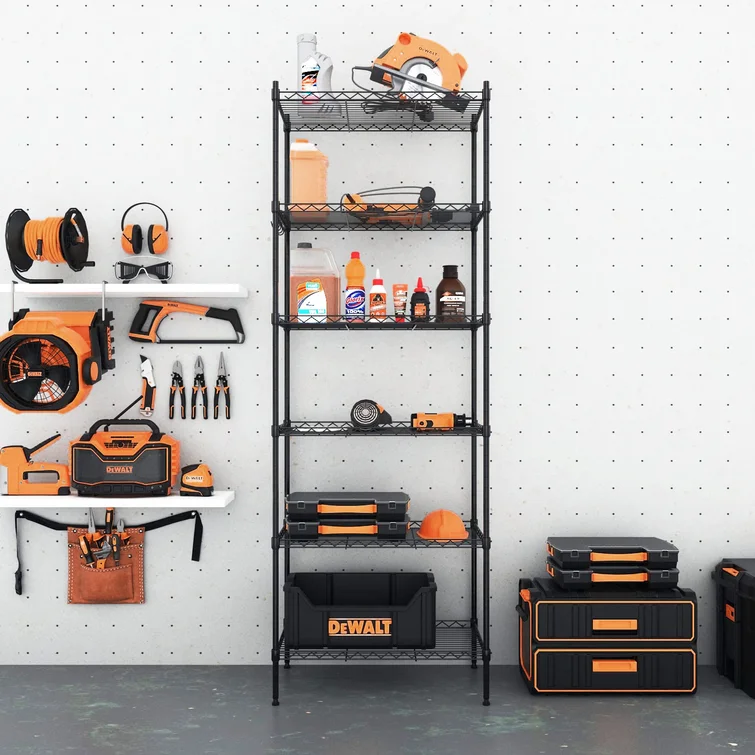 Martens 63" H x 20" W x 12" D Adjustable Shelving Unit with Wheels, Leveling Feet, Side Hooks