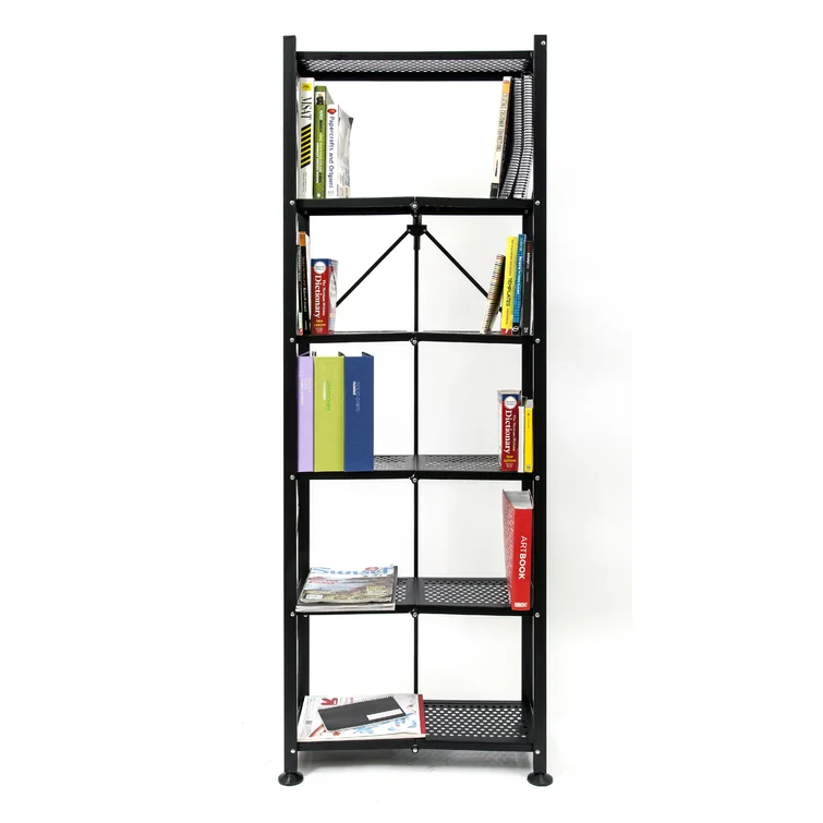 Foldable 6-Shelf Classic Stamped Steel Bookcase